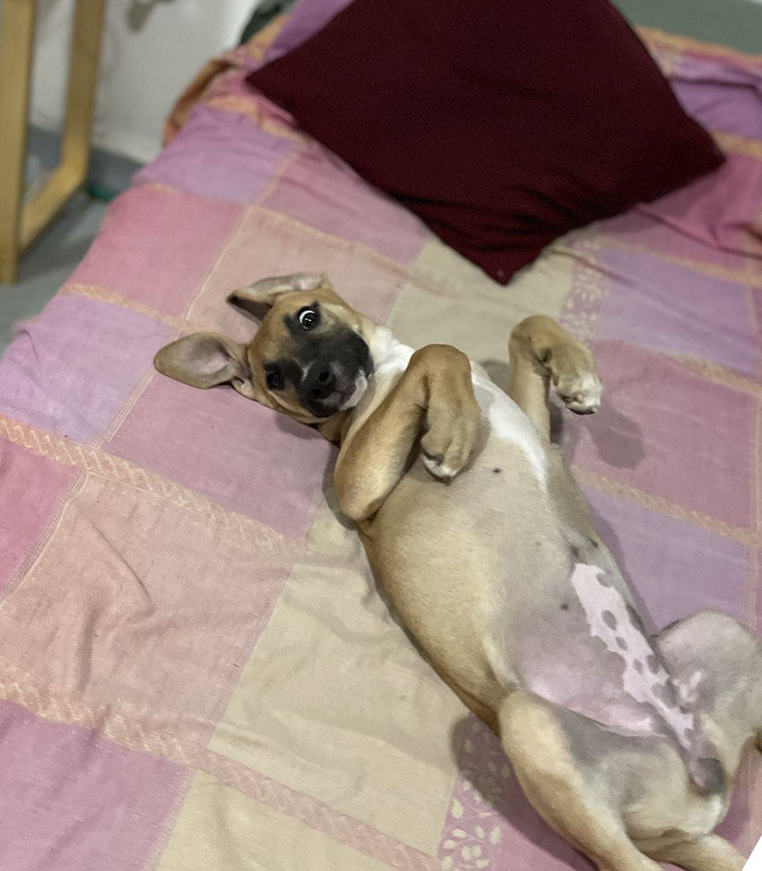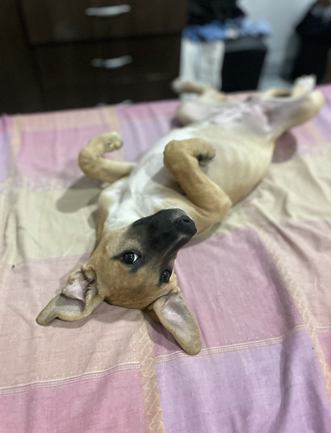 Bambina es una cachorra de 5 meses que fue rescatada de un barrio de bajos recursos durante una campaña de adopción. Se encontraba en una situación de vulnerabilidad y hoy está a salvo.