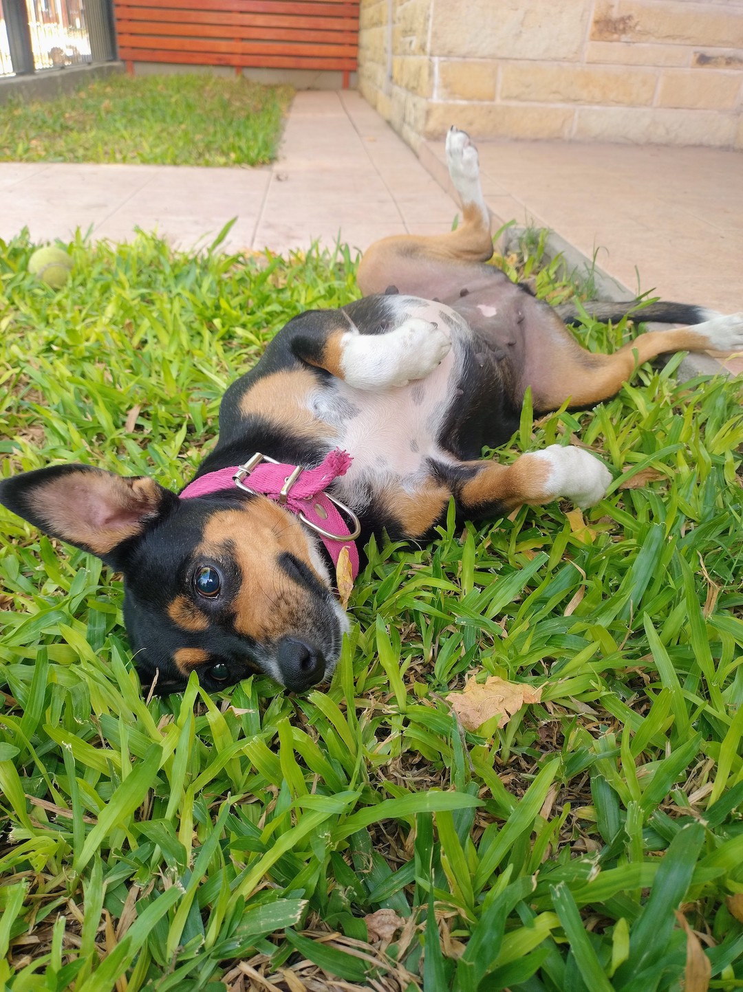 Es muy tranquila, compañera y de esas perras que disfrutan simplemente de estar cerca, sin problemas, sin vueltas, solo compartiendo el día a día con su familia.