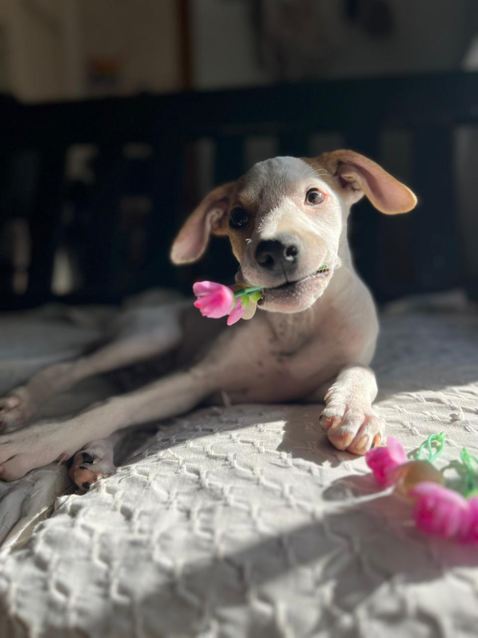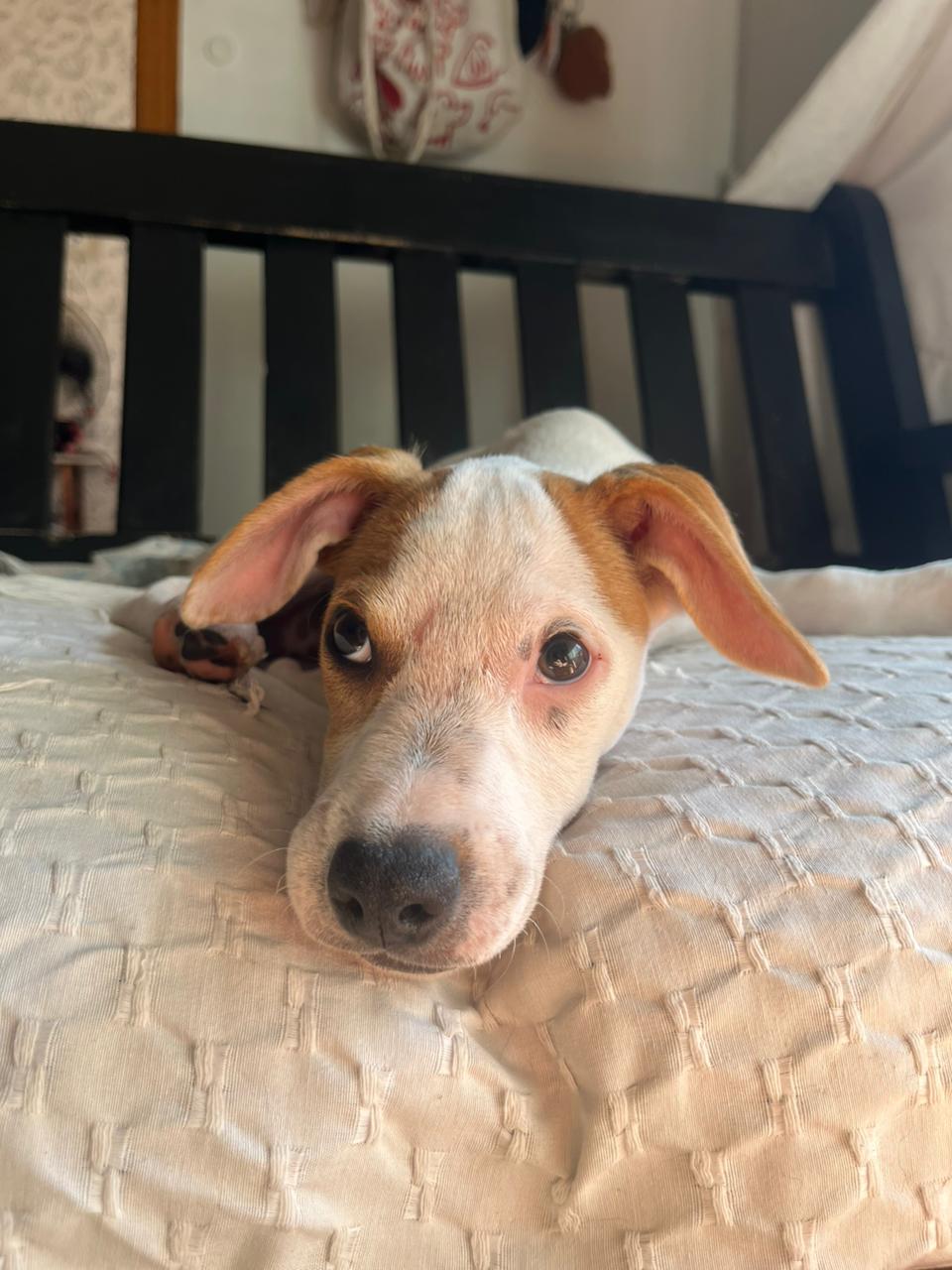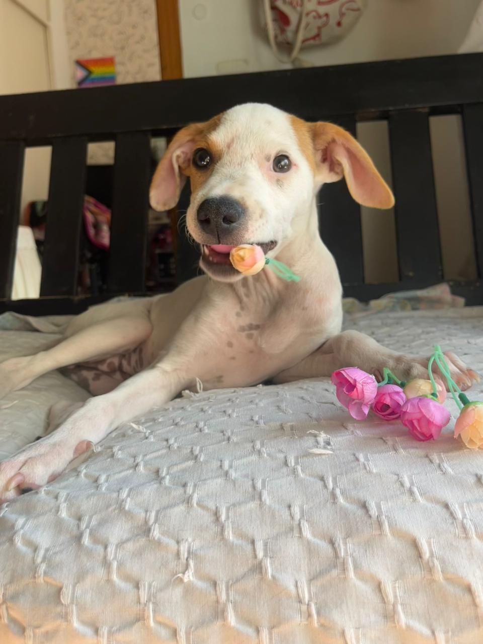 Ivonne es una cachorrita de 3 meses, rescatada durante una campaña de castración en un barrio de bajos recursos. A pesar de un comienzo difícil, es una perrita dulce, curiosa y con muchas ganas de jugar y aprender.