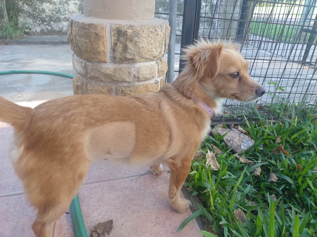 Rubí es una perrita de tamaño bien pequeño (pesa solo 5 kilos), de unos 3 años, que llegó a nosotros después de una campaña de castración en Rafael Castillo. Tuvo una vida difícil y ya fue mamá dos veces, pero ahora le toca empezar una historia distinta.
